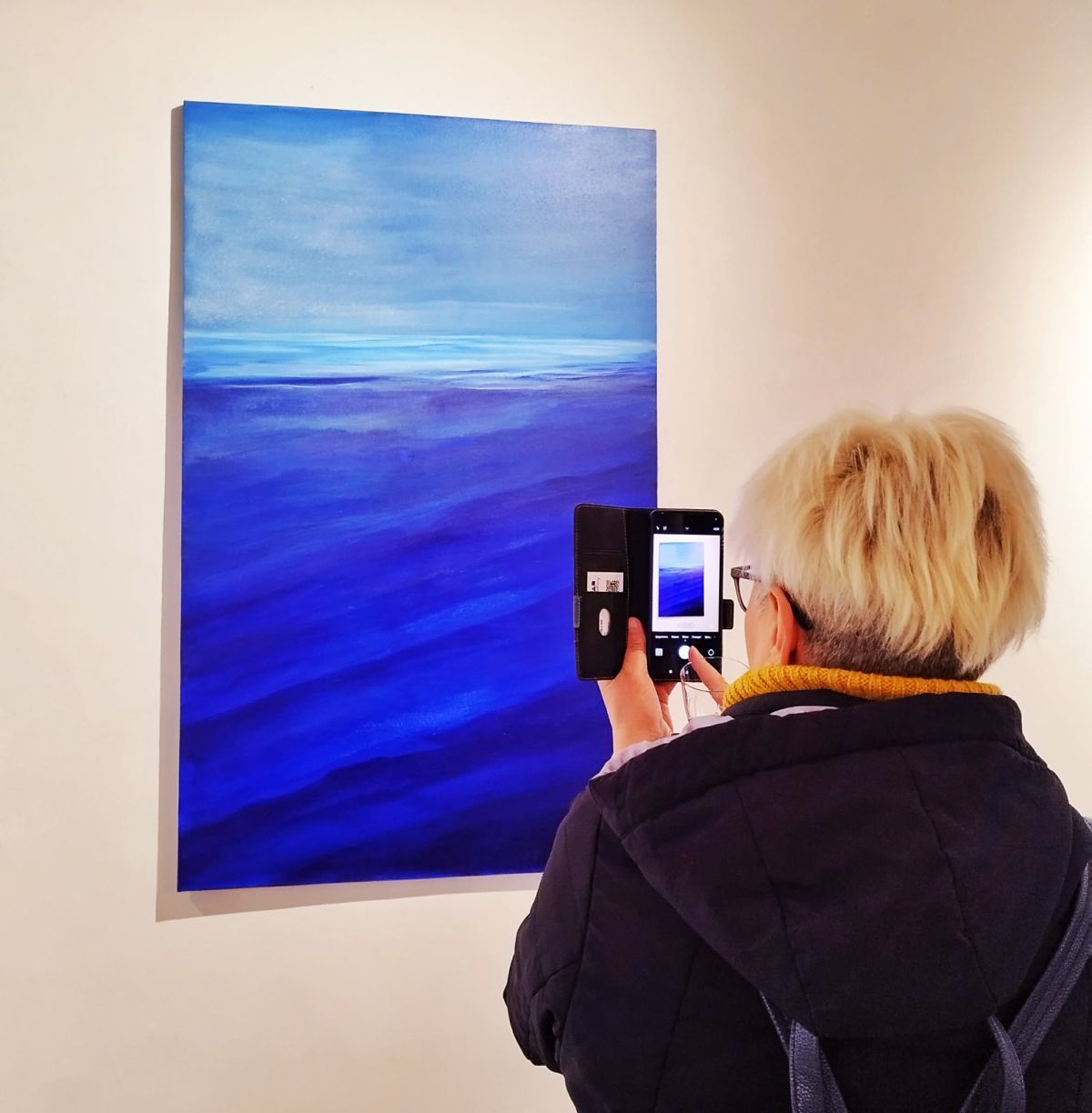 «Вода» для меня – это этап сомнения, кризис формы, попытка выйти за пределы внешней красоты и приблизиться к подлинному переживанию. Это пространство, где я отпускаю контроль, а тишина становится напряженной, — делится художница, указывая на акцент синих красок. – Образы моря, гладкой поверхности, текучего состояния становятся формой исследования моего внутреннего напряжения, а сама «Вода» вводит меня в пространство уязвимости и эмоциональной глубины. В этих работах цвет становится состоянием».