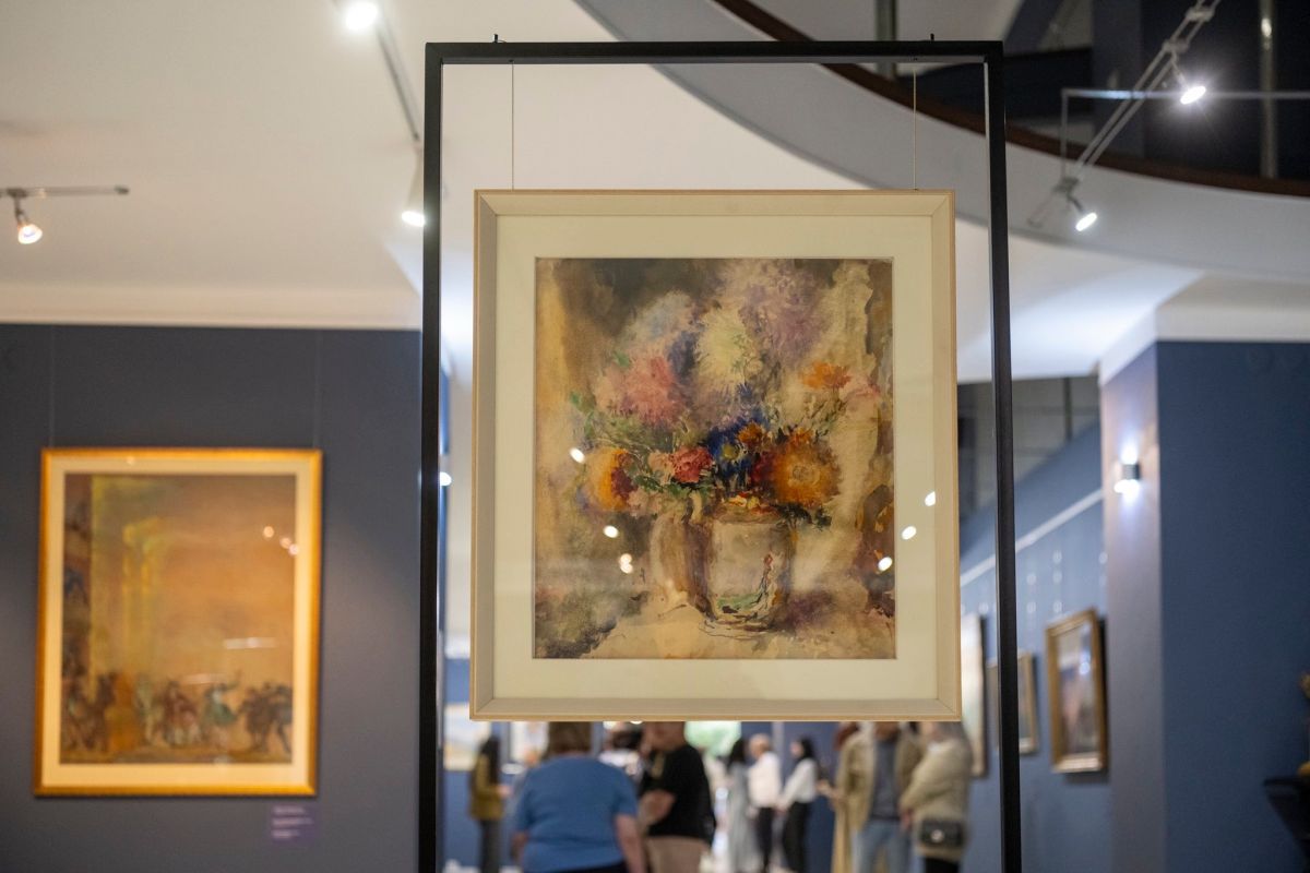 «Артур Фонвизин был известным мастером акварели, хотя начал творить маслом и гуашью. В 1920-х гг. он встретил свою будущую жену, нарисовал ее портрет акварелью, и с тех пор увлекся новой техникой, — рассказала заведующая отделом выставок Марина Нуриджанян. – В основном он рисовал женские портреты, натюрморты, композиции на темы театра и цирка, но эта его работа, ставшая центральной нынешней выставки, имеет особенную историю. Арам Абрамян купил ее у оперного певца Алексея Гордона, не имея представления о том, кто изображен на ней. Однажды, когда картина выставлялась в нашем музее, один из посетителей распознал в образе женщины известного искусствоведа, театроведа Татьяну Князевскую. Начался период исследований, и мы обнаружили в мемуарах Артура Фонвизина нужную информацию. Оказалось, что Князевская была близка с Фонвизиным, часто бывала в его доме. Известно, что он был не особенно богат, зачастую не имел под рукой бумаги и вынужденно рисовал на оборотной стороне другой, уже созданной им картины. Вероятно, именно так родилось и это двойное полотно, объединив на одном листе натюрморт и портрет Князевской. Кстати, он создал около 10 ее портретов, один из них находится у нас».