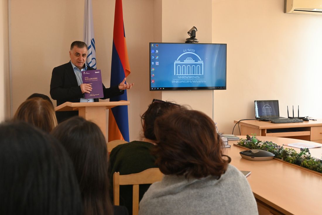 МЕРОПРИЯТИЕ ПРОШЛО В ФОРМАТЕ ЖИВОГО СОДЕРЖАТЕЛЬНОГО ДИАЛОГА С УЧЁНЫМИ И СОТРУДНИКАМИ БИБЛИОТЕКИ. Директор Фундаментальной научной библиотеки Академии наук Армении Майя Григорян, представив гостя, отметила полезность деятельности возглавляемой им организации для взаимопонимания между народами и государствами, особенно когда это проводится посредством издания востребованных книг.